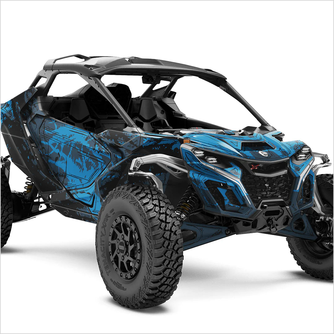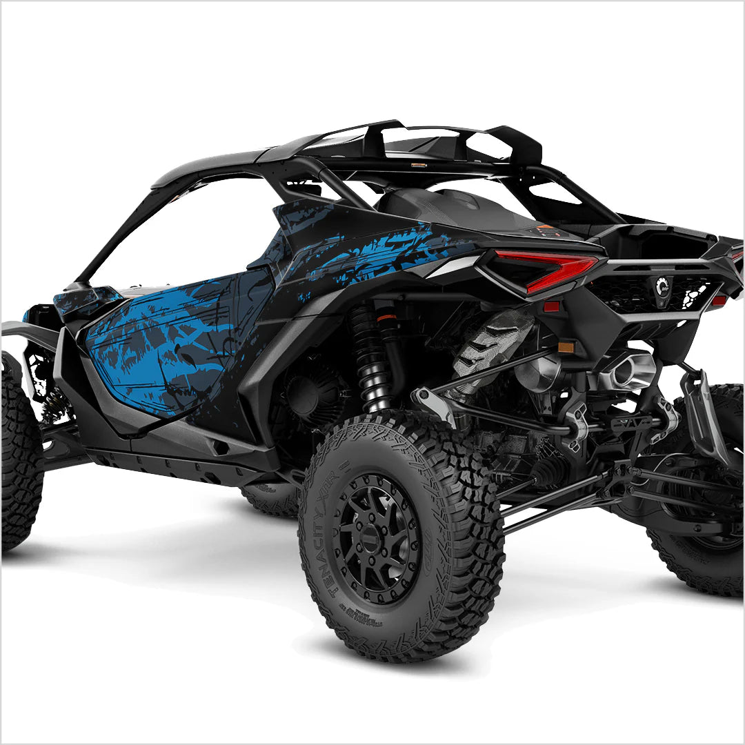 Hochwertige und außergewöhnlich gestaltete Aufkleber speziell für den Can-Am Maverick R (2 Türen) sind für härteste Einsatzbedingungen ausgelegt. Sie können auf ebenen und leicht gewölbten Oberflächen angebracht werden. Dafür kommt ein spezielles Widerstandslaminat zum Einsatz, das einen langfristigen Schutz vor UV-Strahlung, Schmutz, Staub, Kies, Wasser und Kratzern gewährleistet.