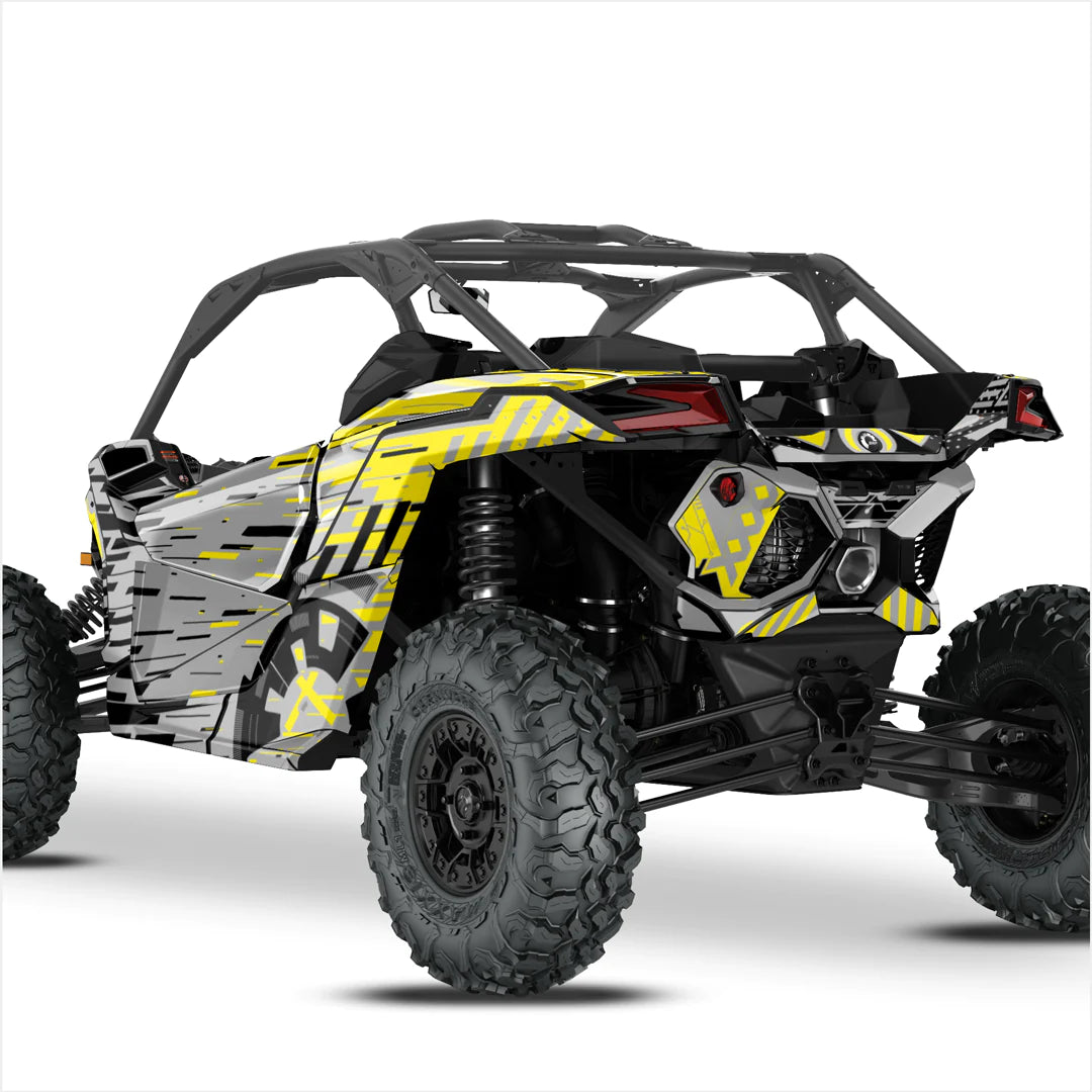Τα αυτοκόλλητα υψηλής ποιότητας και εξαιρετικής σχεδίασης ειδικά για το Can-Am Maverick X3 (2 πόρτες) προορίζονται για τις πιο δύσκολες συνθήκες εκμετάλλευσης. Μπορεί να εφαρμοστεί σε επίπεδες και ελάχιστα καμπυλωτές επιφάνειες, επομένως χρησιμοποιείται laminate ειδικής αντοχής, που εξασφαλίζει μακροχρόνια προστασία από τις ακτίνες UV, τη βρωμιά, τη σκόνη, το χαλίκι, το νερό και τις γρατσουνιές.