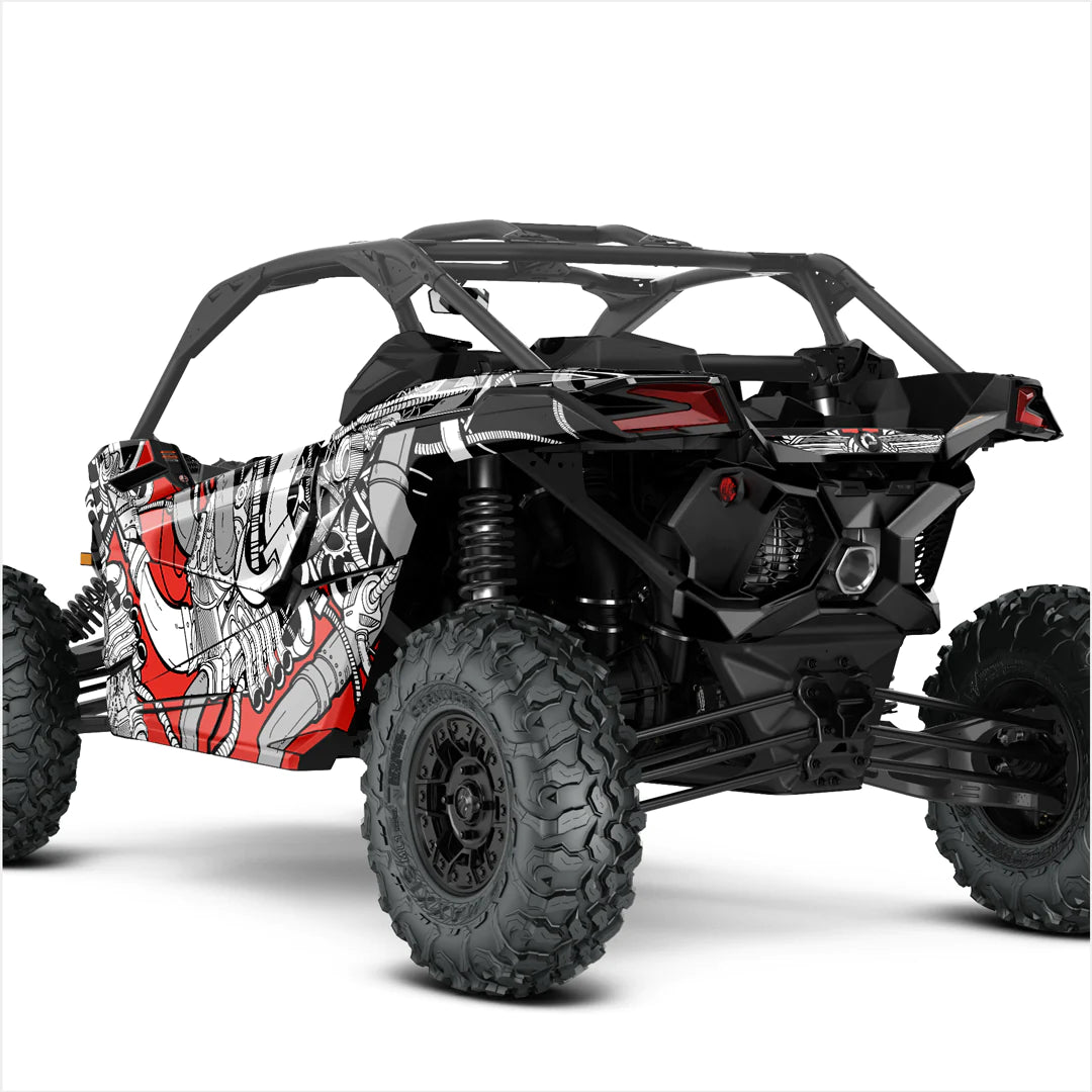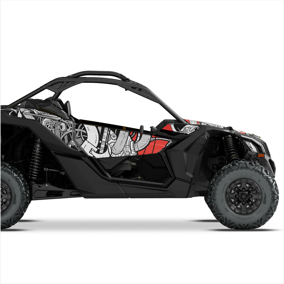 Τα αυτοκόλλητα υψηλής ποιότητας και εξαιρετικής σχεδίασης ειδικά για το Can-Am Maverick X3 (2 πόρτες) προορίζονται για τις πιο δύσκολες συνθήκες εκμετάλλευσης. Μπορεί να εφαρμοστεί σε επίπεδες και ελάχιστα καμπυλωτές επιφάνειες, επομένως χρησιμοποιείται laminate ειδικής αντοχής, που εξασφαλίζει μακροχρόνια προστασία από τις ακτίνες UV, τη βρωμιά, τη σκόνη, το χαλίκι, το νερό και τις γρατσουνιές.