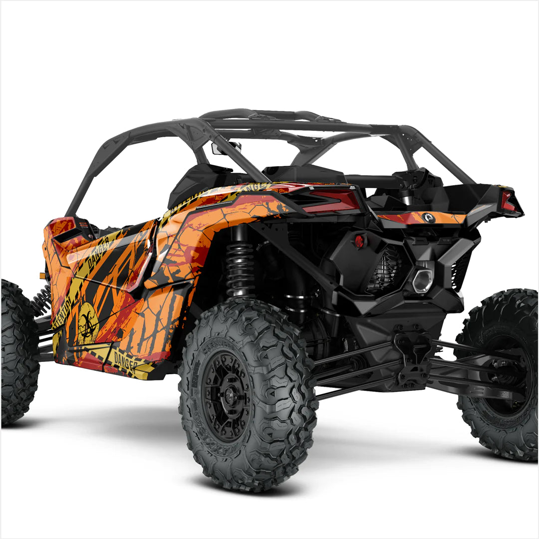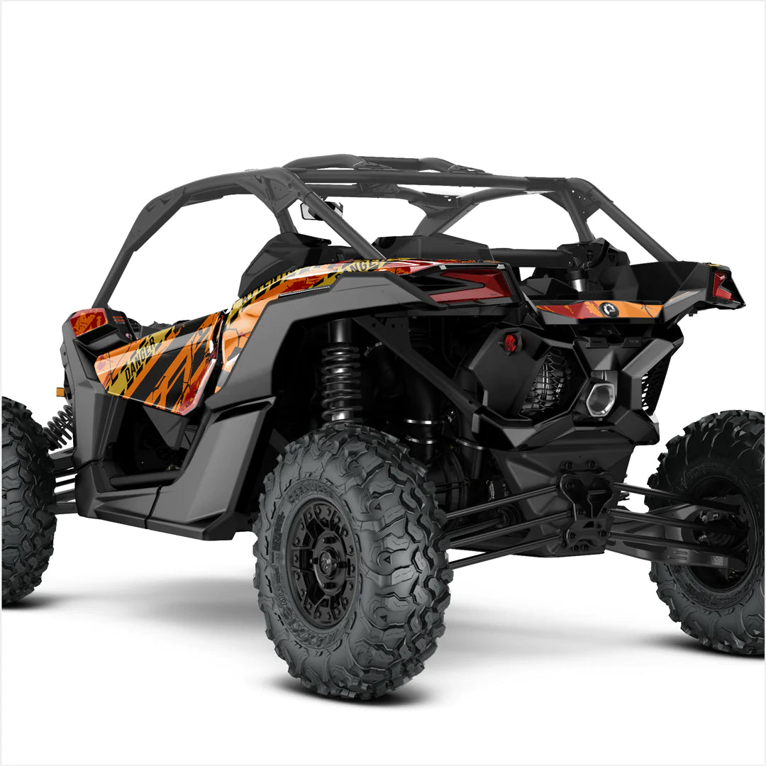 Τα αυτοκόλλητα υψηλής ποιότητας και εξαιρετικής σχεδίασης ειδικά για το Can-Am Maverick X3 (2 πόρτες) προορίζονται για τις πιο δύσκολες συνθήκες εκμετάλλευσης. Μπορεί να εφαρμοστεί σε επίπεδες και ελάχιστα καμπυλωτές επιφάνειες, επομένως χρησιμοποιείται laminate ειδικής αντοχής, που εξασφαλίζει μακροχρόνια προστασία από τις ακτίνες UV, τη βρωμιά, τη σκόνη, το χαλίκι, το νερό και τις γρατσουνιές.
