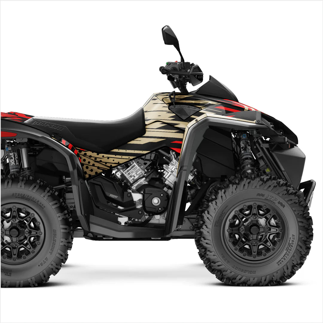Αυτοκόλλητα υψηλής ποιότητας και εξαιρετικής σχεδίασης ειδικά για το Can-Am Renegade. Τα αυτοκόλλητα κατασκευάζονται για να αντέχουν στις πιο δύσκολες συνθήκες εκμετάλλευσης. Μπορεί να εφαρμοστεί σε επίπεδες και ελάχιστα καμπυλωτές επιφάνειες, επομένως χρησιμοποιείται laminate ειδικής αντοχής, που εξασφαλίζει μακροχρόνια προστασία από τις ακτίνες UV, τη βρωμιά, τη σκόνη, το χαλίκι, το νερό και τις γρατσουνιές.