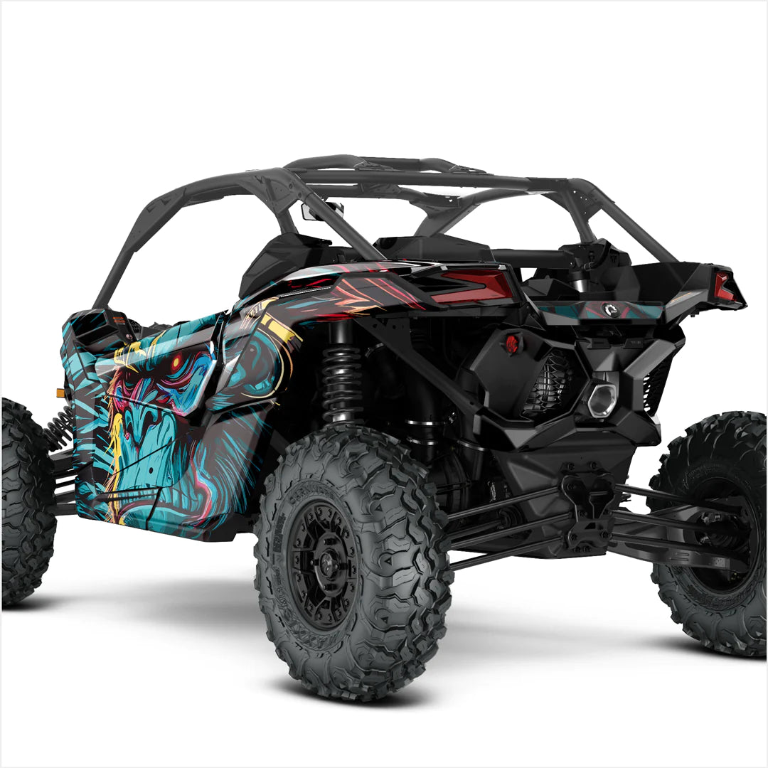 Τα αυτοκόλλητα υψηλής ποιότητας και εξαιρετικής σχεδίασης ειδικά για το Can-Am Maverick X3 (2 πόρτες) προορίζονται για τις πιο δύσκολες συνθήκες εκμετάλλευσης. Μπορεί να εφαρμοστεί σε επίπεδες και ελάχιστα καμπυλωτές επιφάνειες, επομένως χρησιμοποιείται laminate ειδικής αντοχής, που εξασφαλίζει μακροχρόνια προστασία από τις ακτίνες UV, τη βρωμιά, τη σκόνη, το χαλίκι, το νερό και τις γρατσουνιές.