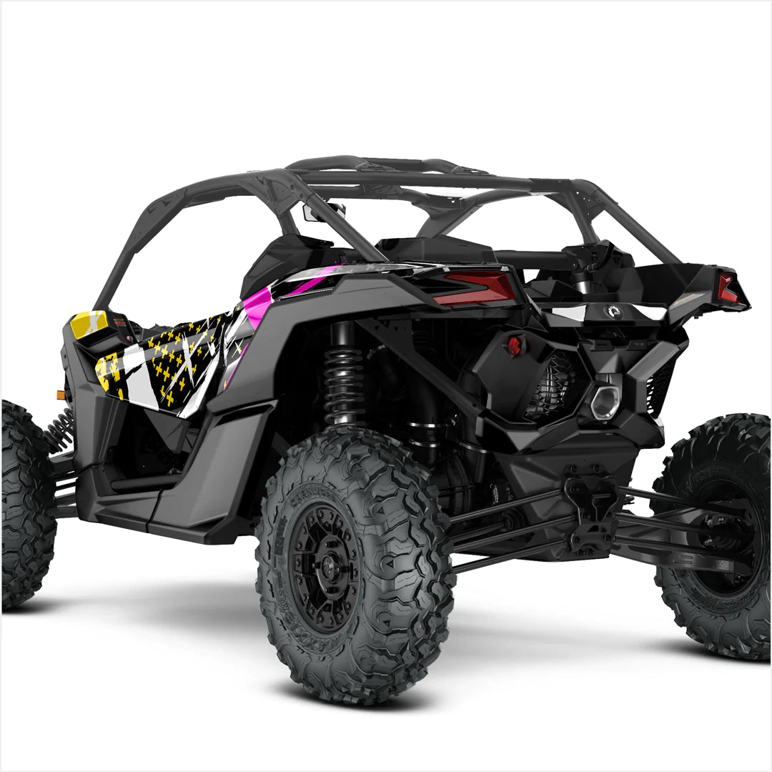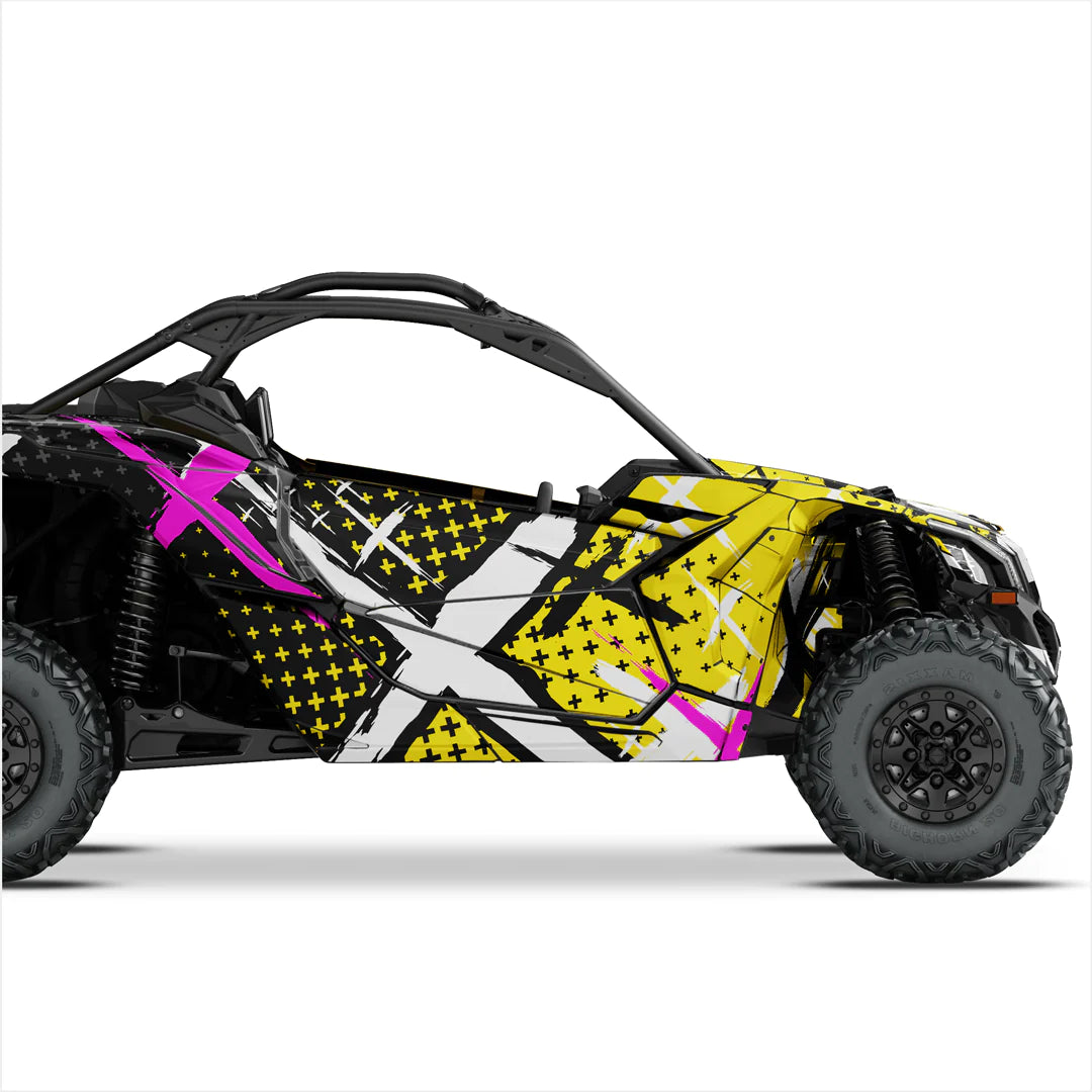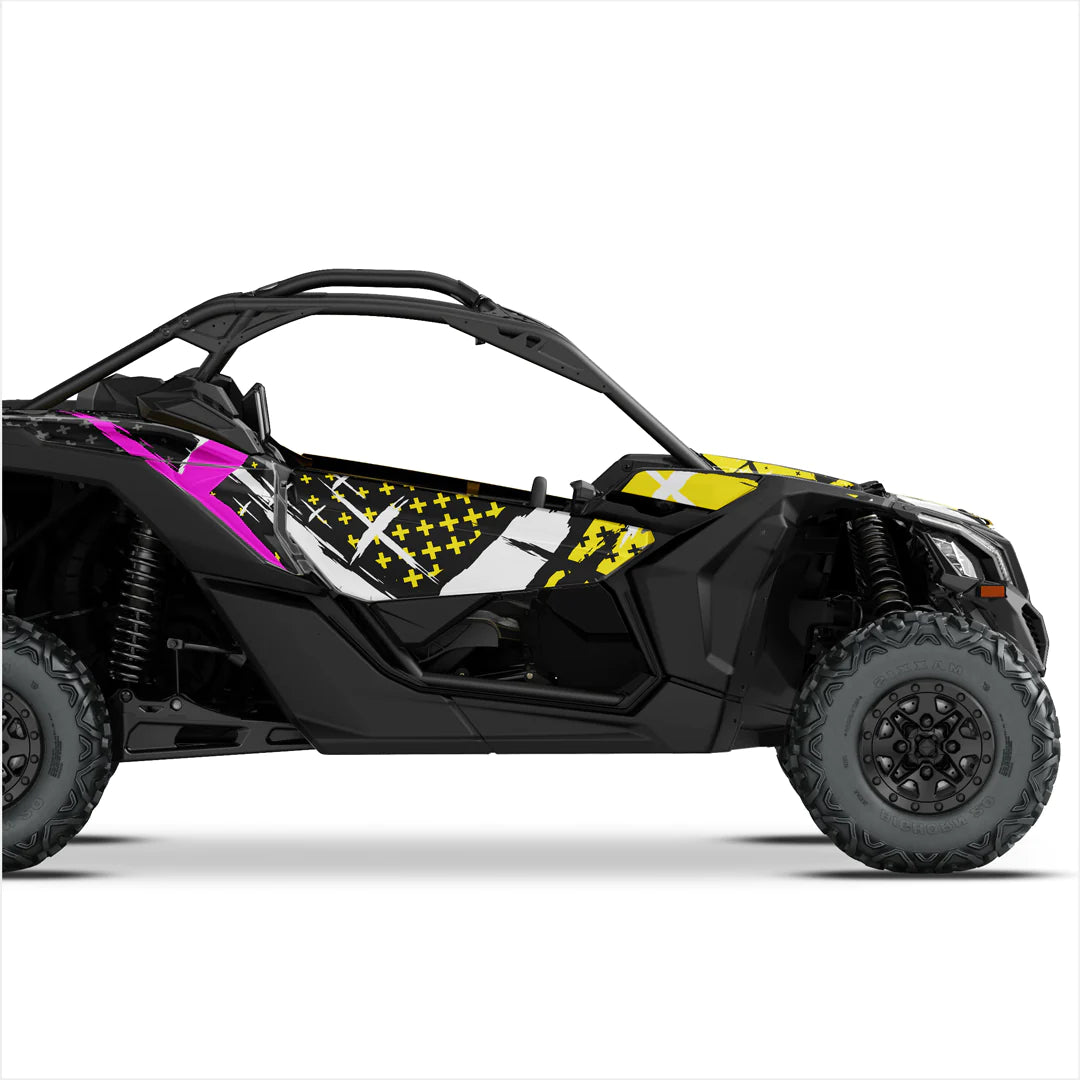 Τα αυτοκόλλητα υψηλής ποιότητας και εξαιρετικής σχεδίασης ειδικά για το Can-Am Maverick X3 (2 πόρτες) προορίζονται για τις πιο δύσκολες συνθήκες εκμετάλλευσης. Μπορεί να εφαρμοστεί σε επίπεδες και ελάχιστα καμπυλωτές επιφάνειες, επομένως χρησιμοποιείται laminate ειδικής αντοχής, που εξασφαλίζει μακροχρόνια προστασία από τις ακτίνες UV, τη βρωμιά, τη σκόνη, το χαλίκι, το νερό και τις γρατσουνιές.