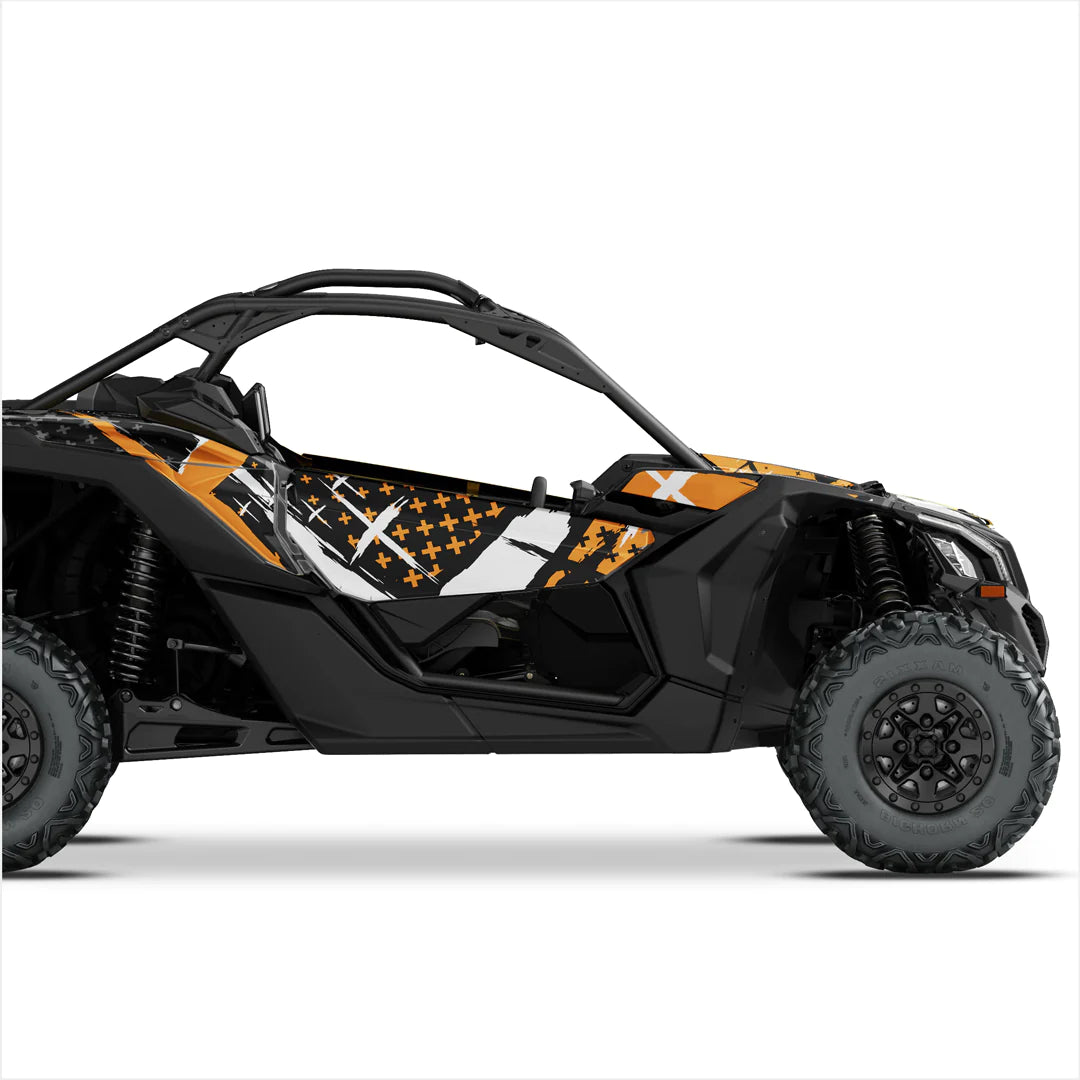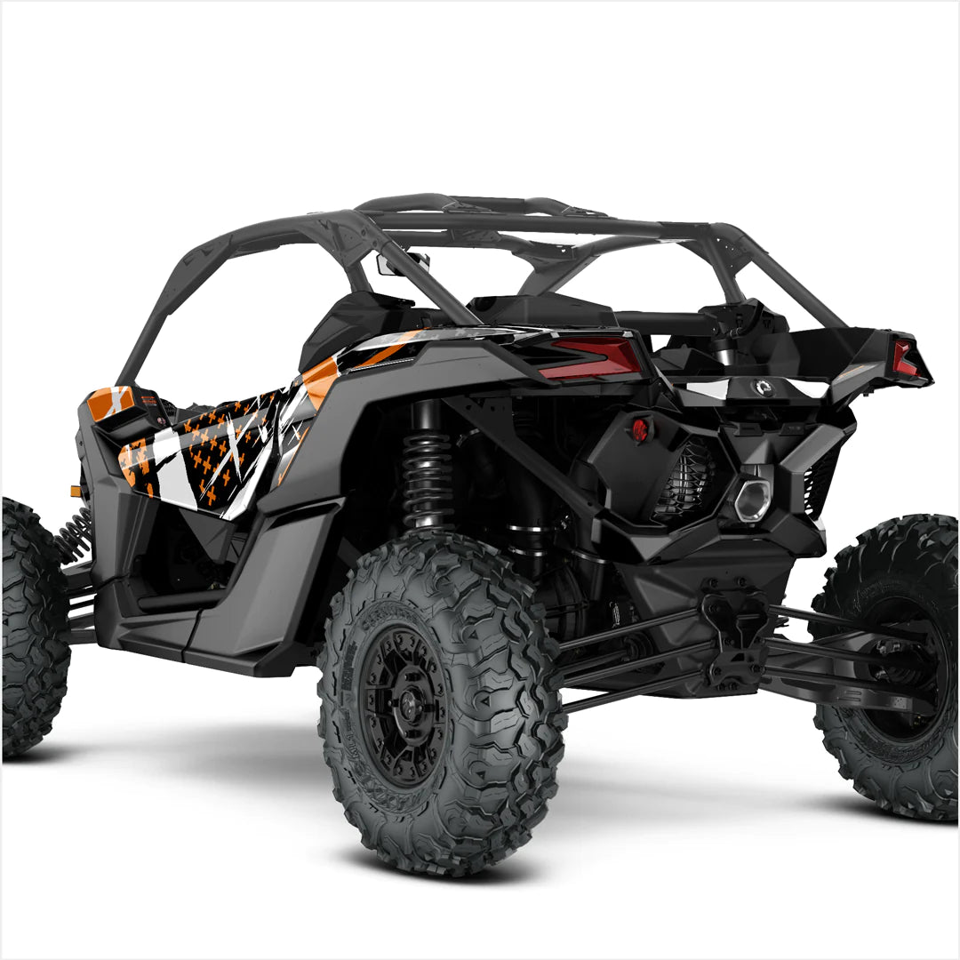 High quality and exceptional design stickers made special for Can-Am Maverick X3 (2 doors) are meant for the toughest exploitation conditions. It can be applied on flat and little curved surfaces, therefore, a special resistance laminate is used, which ensures a long-term protection from UV rays, dirt, dust, gravel, water and scratches.