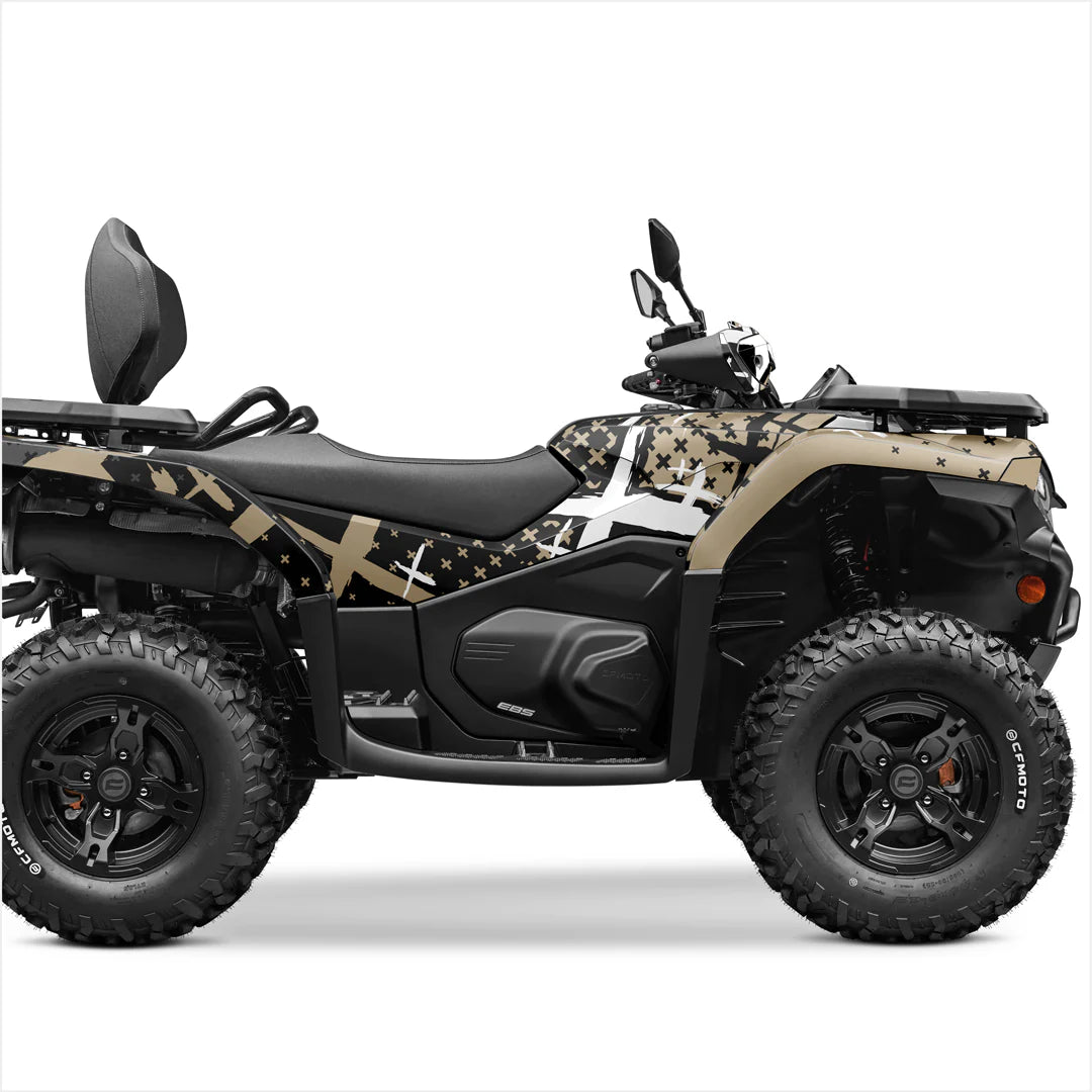 High quality and exceptional design stickers made special for CFMOTO CFORCE atv. Stickers are made to withstand toughest exploitation conditions. It can be applied on flat and little curved surfaces, therefore, a special resistance laminate is used, which ensures a long-term protection from UV rays, dirt, dust, gravel, water and scratches.