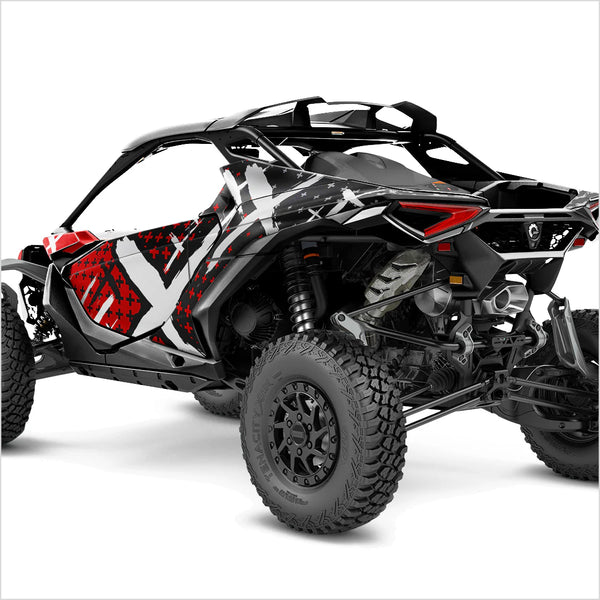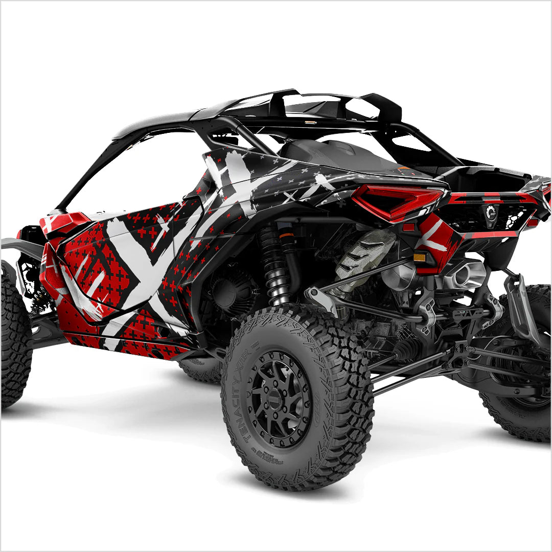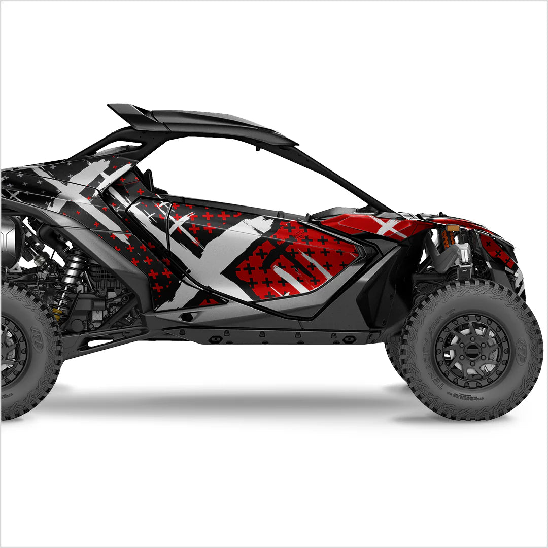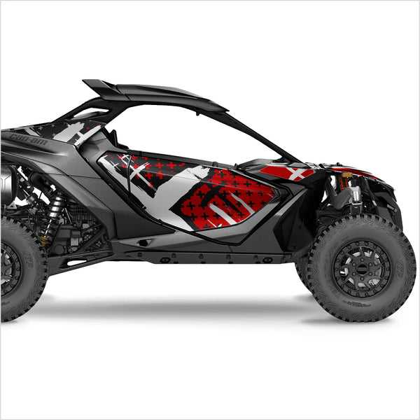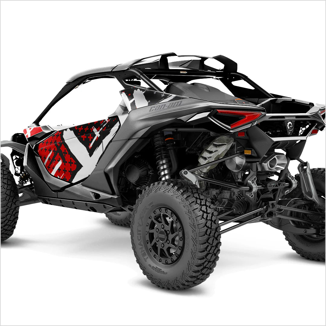 High quality and exceptional design stickers made special for Can-Am Maverick R (2 doors) are meant for the toughest exploitation conditions. It can be applied on flat and little curved surfaces, therefore, a special resistance laminate is used, which ensures a long-term protection from UV rays, dirt, dust, gravel, water and scratches.