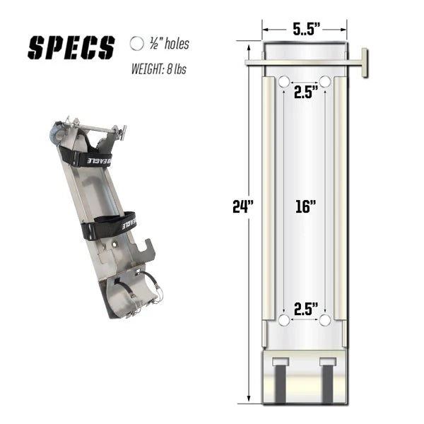 Rozsdamentes acélból készült, és 4 előre fúrt lyukkal könnyen csavarozható a járműre, ez a tartó az 1,5 tonnás "Talon", az emelő fogantyúi, hosszabbítója és opcionális Pro Eagle szerszámkészlet biztonságosan és megbízhatóan.