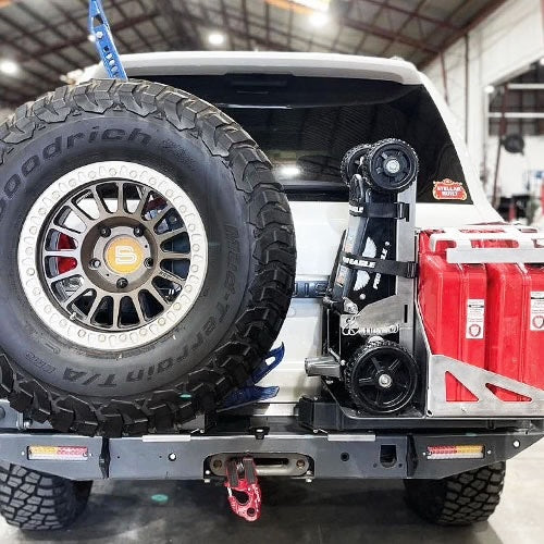 Rozsdamentes acélból készült, és 4 előre fúrt lyukkal könnyen a járműhöz csavarozható, ez a tartó a 2 tonnás "The Beast" emelőt, az emelő fogantyúit és az opcionális emelőt is megtartja.