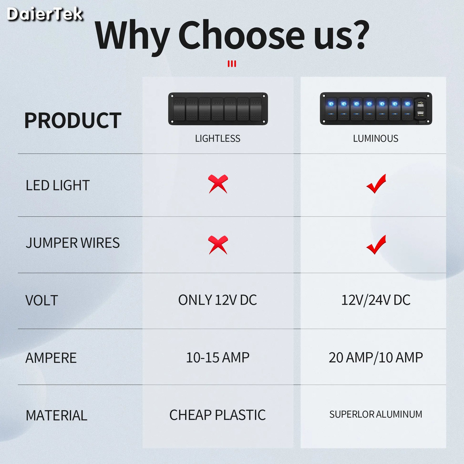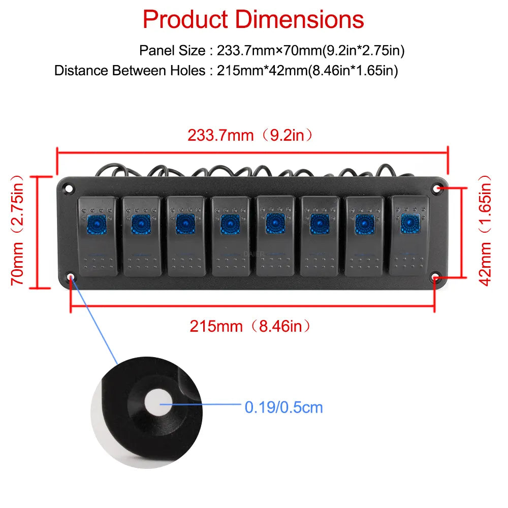 8 Gang Marine billenőkapcsoló panel kék LED-es lámpával