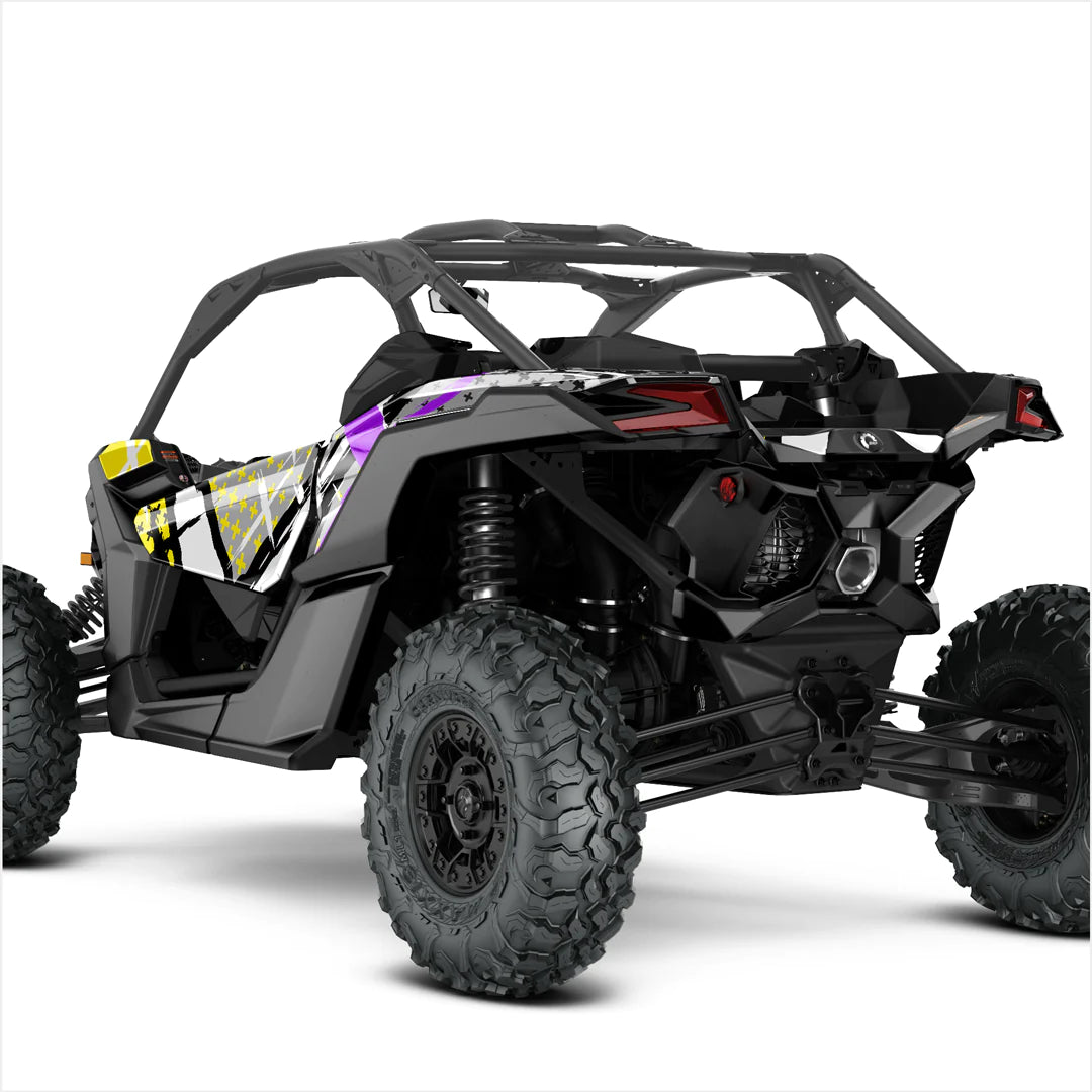 A Can-Am Maverick X3-hoz (2 ajtós) készült, kiváló minőségű és kivételes dizájnú matricák a legkeményebb hasznosítási körülményekhez készültek. Lapos és enyhén ívelt felületekre is felvihető, ezért speciális ellenálló laminátumot használnak, amely hosszú távú védelmet biztosít az UV sugarak, szennyeződés, por, kavics, víz és karcolás ellen.