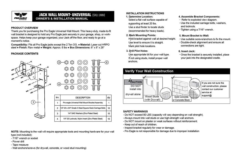 Supporto da parete universale per <tc>Pro Eagle</tc> cricco