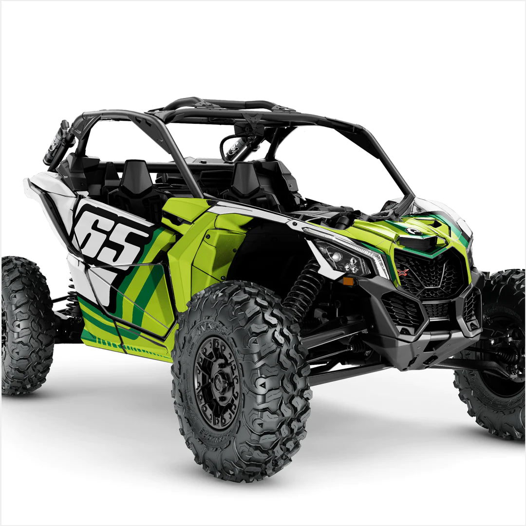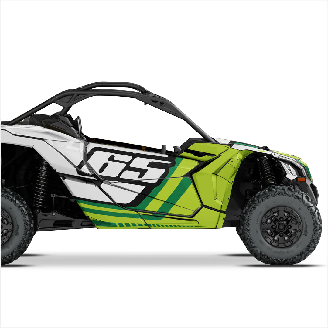 Naklejki o wysokiej jakości i wyjątkowym wzornictwie, stworzone specjalnie dla Can-Am Maverick X3 (2 drzwi), są przeznaczone do najtrudniejszych warunków eksploatacji. Można je nakładać na płaskie i lekko zakrzywione powierzchnie, dlatego zastosowano specjalny laminat odporny na działanie czynników atmosferycznych, który zapewnia długotrwałą ochronę przed promieniami UV, brudem, kurzem, żwirem, wodą i zarysowaniami.