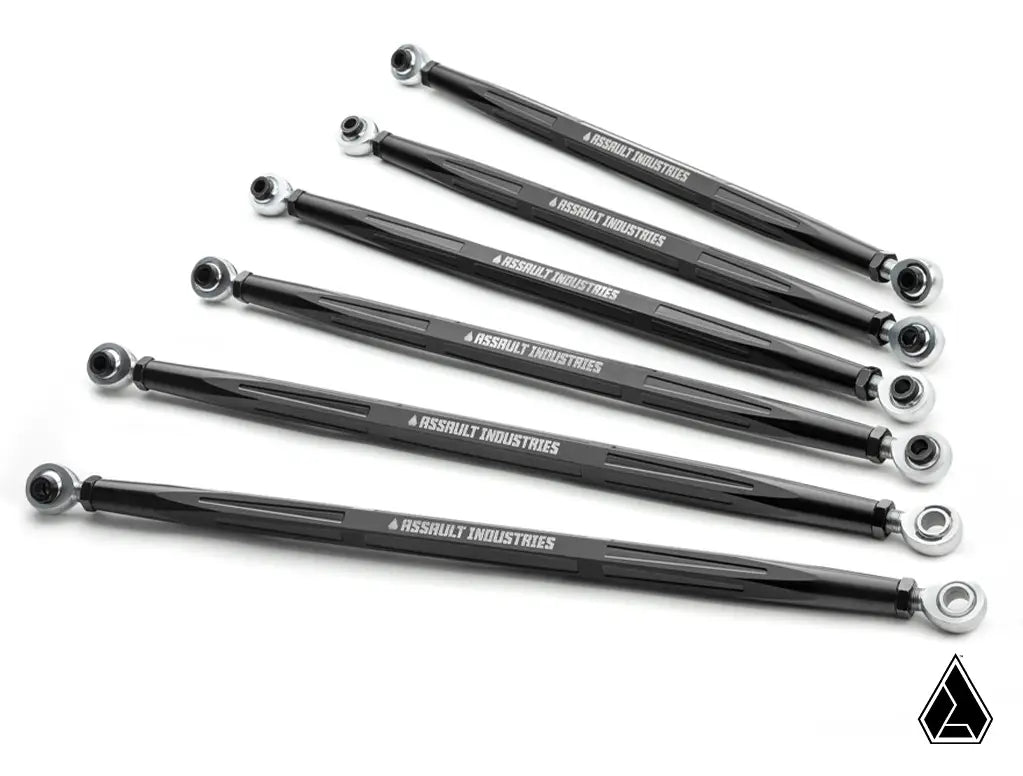 Ulepsz styl swojego Mavericka R dzięki Assault Industries' badass Can-Am Maverick R Turret Style Quick Camber Radius Rods. Są super mocne i dobrze wyglądają. Łatwo zmienić camber szybko dzięki Assault Industries' konstrukcja o szybkim pochyleniu.