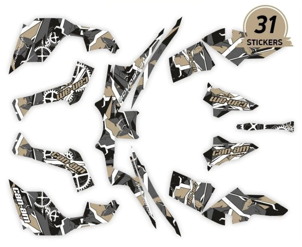 Naklejki o wyjątkowym wzornictwie i wysokiej jakości, wykonane specjalnie dla Can-Am Renegade X MR. Naklejki są wykonane tak, aby wytrzymuje najtrudniejsze warunki eksploatacji. Może być stosowany na płaskich i lekko zakrzywionych powierzchniach, dlatego zastosowano specjalny laminat odpornościowy, który zapewnia długotrwałą ochronę przed promieniami UV, brudem, kurzem, żwirem, wodą i zarysowaniami.