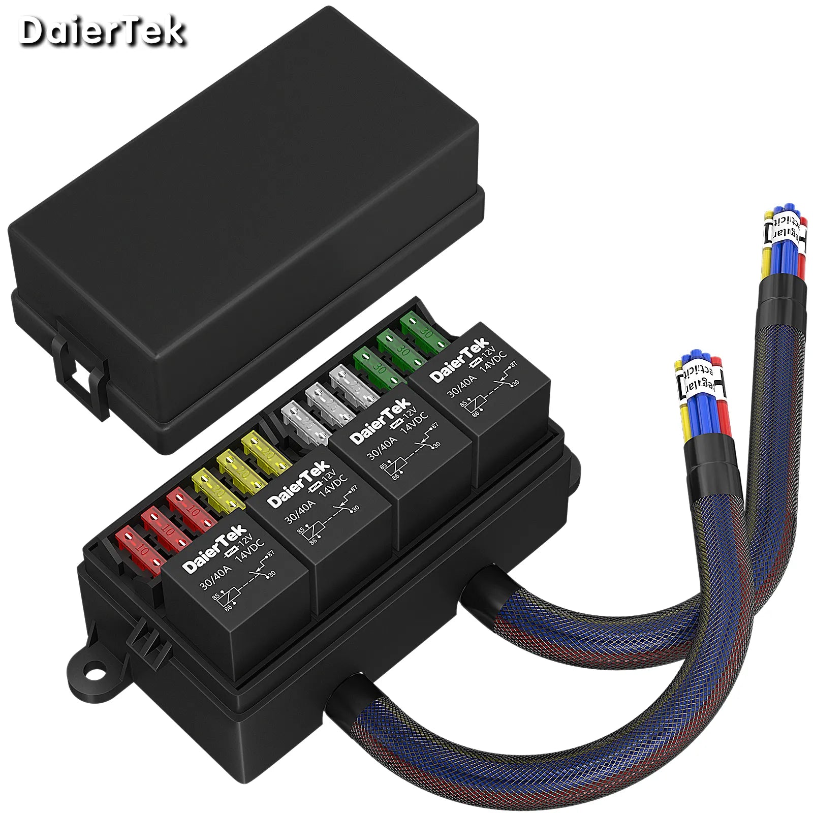 Esta caixa de relé automotiva de 12 V será equipada com 4 peças de relés de 4 ou 5 pinos de 40 A, fornecendo a classificação mais alta para tornar sua aplicação mais ampla e segura.