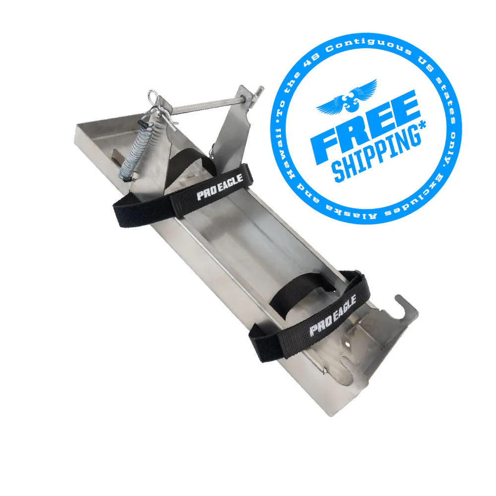 Fabricado em aço inoxidável e facilmente aparafusado ao seu veículo com 4 furos pré-perfurados, este suporte acomoda o macaco hidráulico "Kratos" de 3 toneladas, as manivelas do macaco e o acessório opcional.